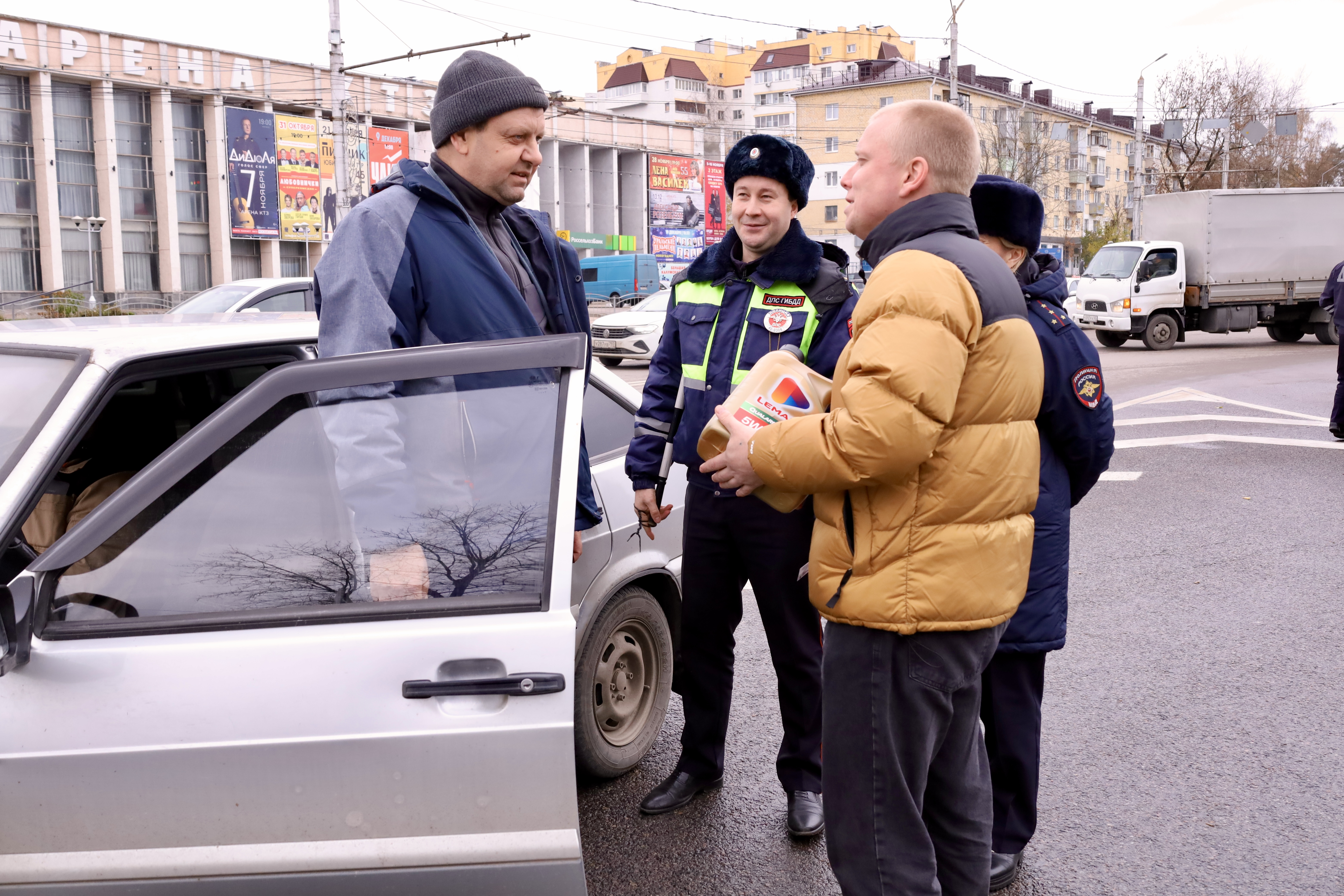 Сотрудники Госавтоинспекции останавливали автомобили, чтобы поздравить водителей с профессиональным праздником и напомнить о важности соблюдения правил дорожного движения. Вместо строгих проверок участников ждали улыбки, тёплые слова и, конечно же, подарки.
