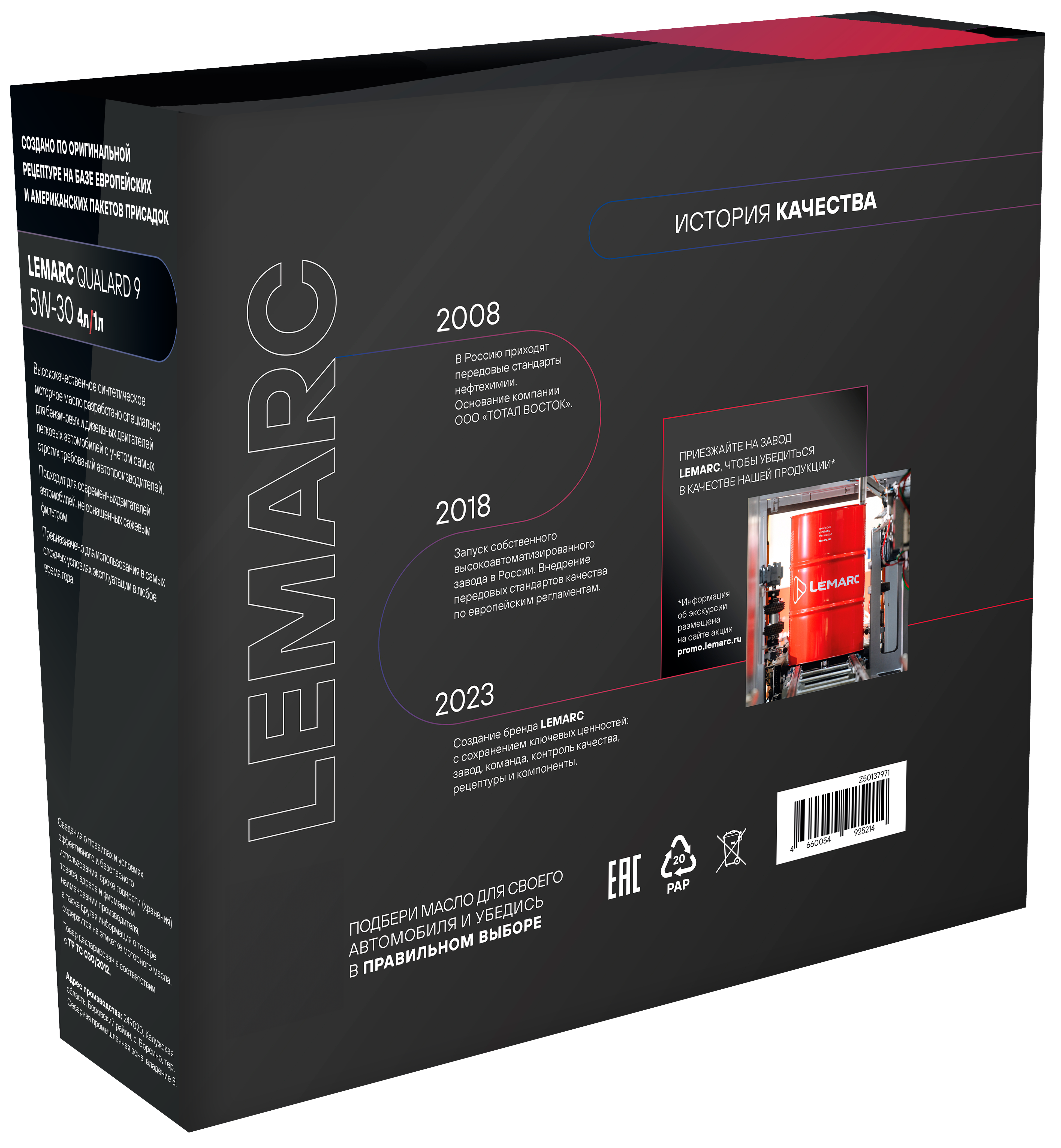 LEMARC QUALARD 9 5W-30 подходит для современных двигателей автомобилей, не оснащенных сажевым фильтром.