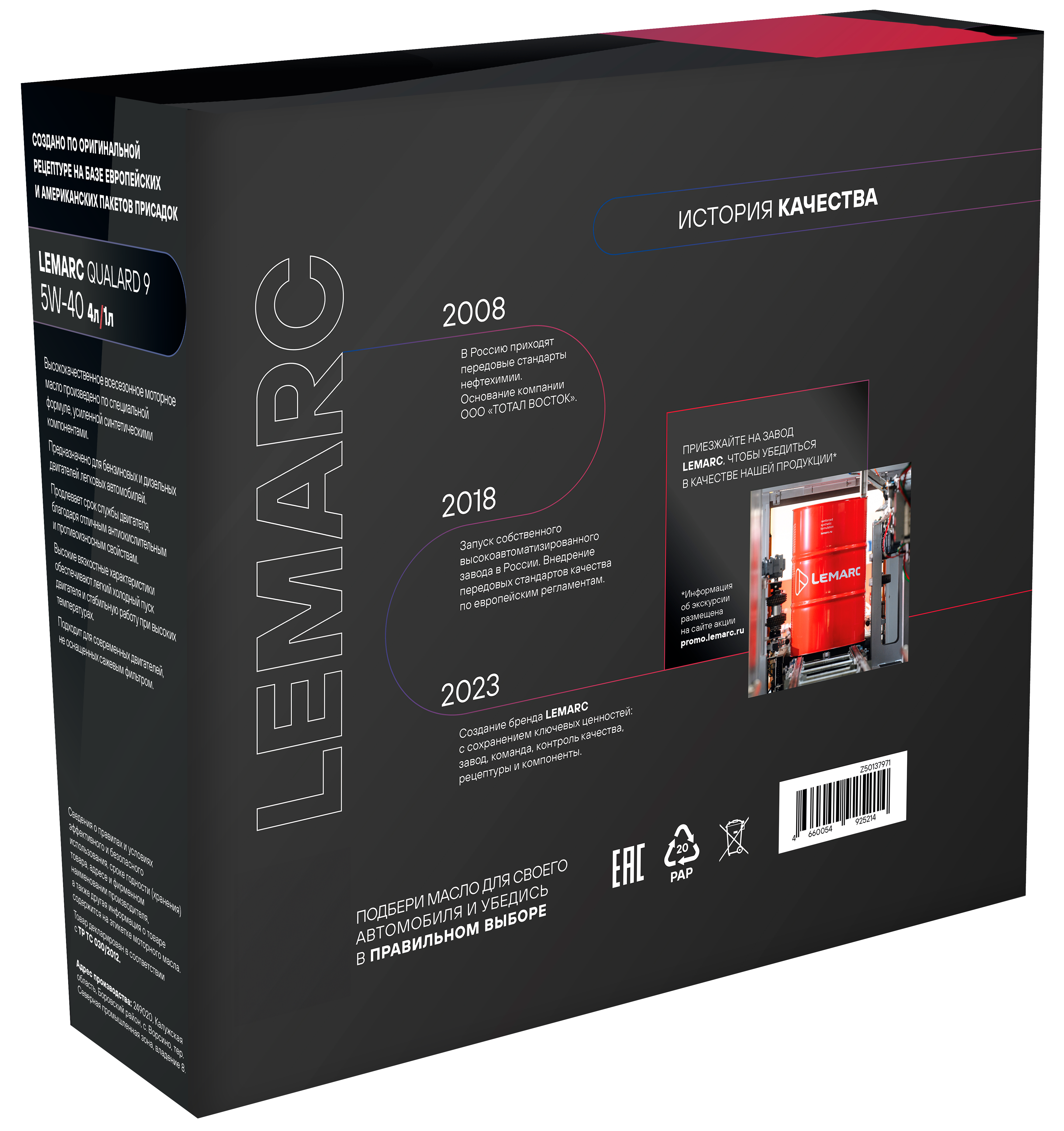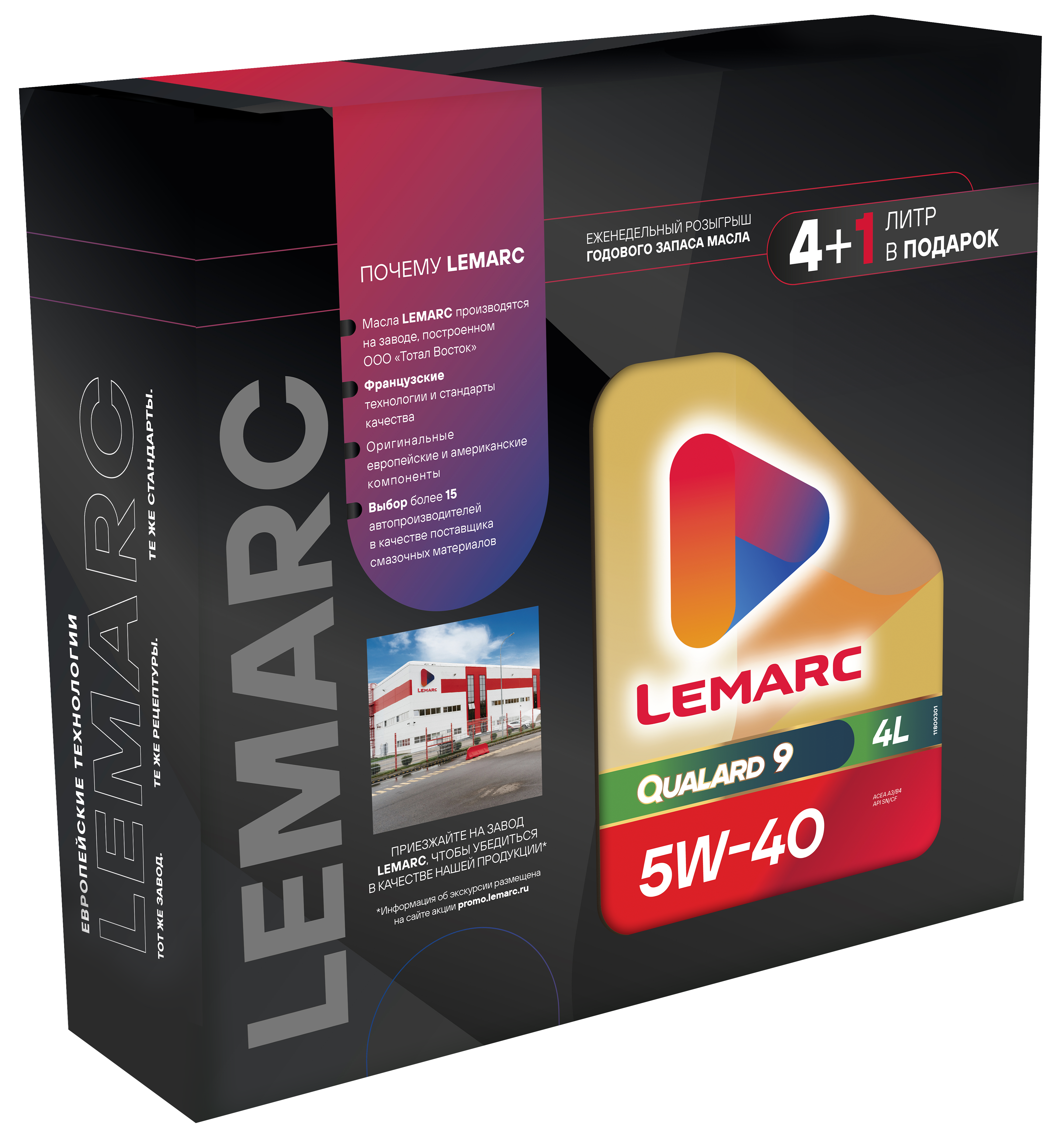 Высококачественное всесезонное моторное масло Lemarc QUALARD 9 5W-40 произведено по специальной формуле, усиленной синтетическими компонентами. Предназначено для бензиновых и дизельных двигателей легковых автомобилей. Продлевает срок службы двигателя, благодаря отличным антиокислительным и противоиз